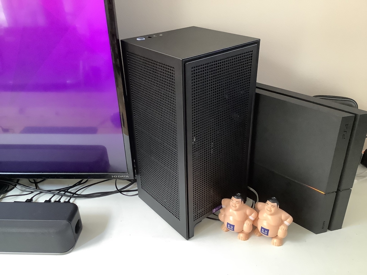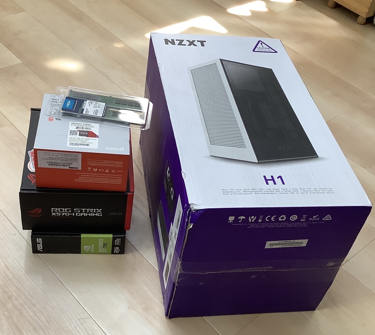 49000円。NZXT H1 にした。電源と水冷がバンドルされているのが「めんどくさくない」。約19cm x 約19cm x 約40cmという、2個の立方体を重ねた外寸というのが「邪魔じゃない」基準でグッと来て選んだ。